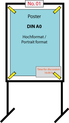 Die vortragenden Autoren sollten mindestens die Hälfte der Zeit ihrer Session für Diskussionen bei ihrem Poster zu finden sein. Tragen Sie bitte die entsprechende Zeit auf Ihrem Poster ein.
